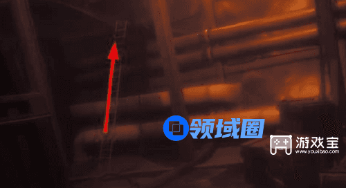 1、玩家进入第三章以后,从海滩这里朝着船移动,进入船体内部以后爬上下图的梯子。