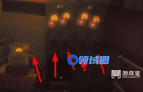 2、爬到第二层以后,我们朝着左侧移动,然后将下图标记的装置启动(都变成绿灯)。