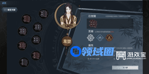 1、开局有二个搭配,一个是流派选择,一个是灵根选择。
