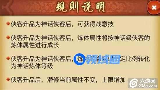 2、侠客升品为神话侠客后,炼体属性将按照神话级侠客的炼体属性进行成长;
