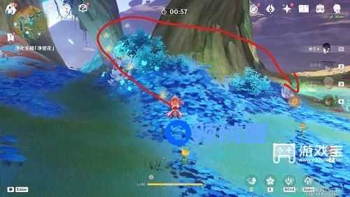 净化完地面的净觉花之后,飞到空中如图所示绕一圈拿花瓣,拿齐花瓣就出现剩余的净觉花
