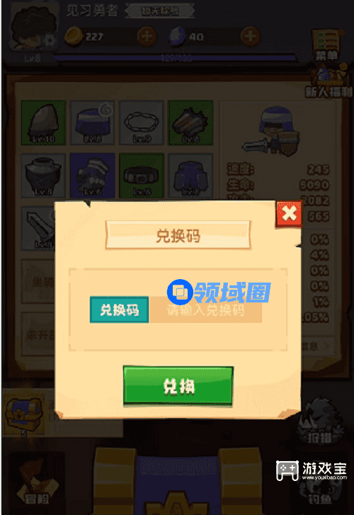 2、上游戏以后,打开右上角的菜单界面,点开兑换码,输入上面的兑换码以后就可以领取了。