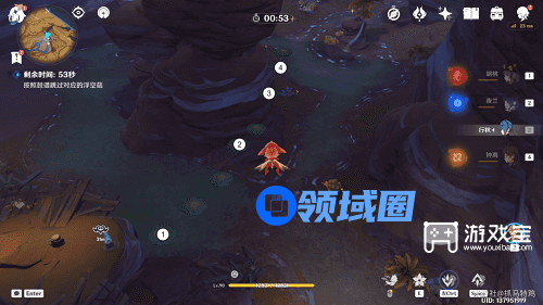 跳菇方式:按顺序在下图中标注序号的浮空菇上跳一下。