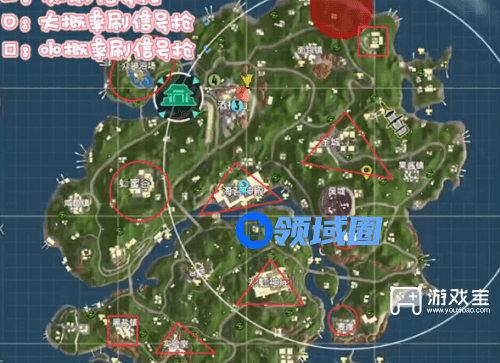 (1)三角形区域表示:必刷信号枪,如:圣城、海苔神殿、彩虹神庙、实验室;
