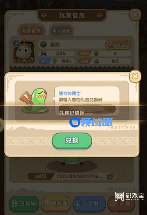 1、玩家在兑换码的时候会收到礼包码错误的提示。