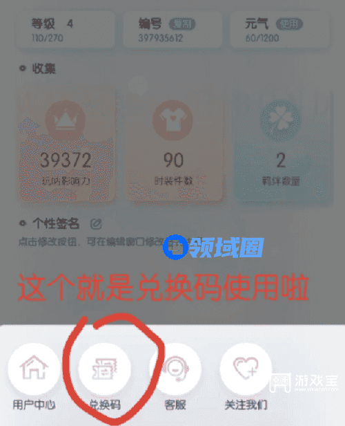 2、在左上角点击自己的头像,进入用户服务界面,点击左下角的兑换码然后输出就可以领取了。
