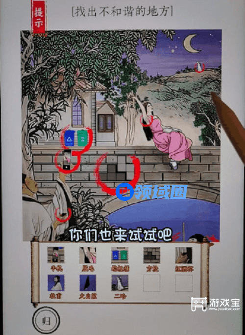 识字大师举头望明月关卡里需要玩家从图中找出十处不和谐的位置后才可以过关,游戏宝小编带来识字大师举头望明月找出不和谐的地方攻略,一起来看看吧。
