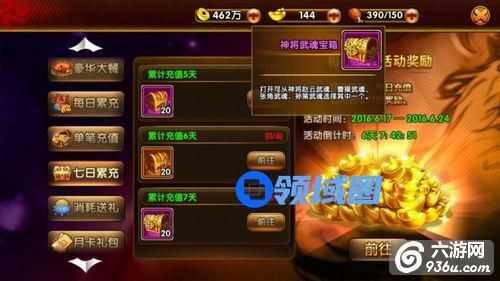 七日累充,这个活动是作为新手四神卡(赵云,孙策,曹操,张角)获取来源是比较不错的,有点闲钱的中R不要忘了每天6元。其次还能有不少的装备材料及其他小东西。性价比感觉还行。