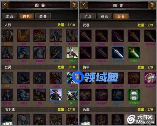 图鉴系统包含了游戏里所有的佣兵和装备的介绍,在游戏中每次获取到新的佣兵或装备时,便会点亮图鉴的图标。在图鉴的主页面,会显示已点亮图鉴的汇总信息,还可查看到同种族下其他未点亮的图鉴有哪些,以便进行收集。收集图鉴最多的人,会登上图鉴排行榜噢。