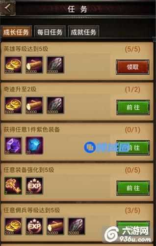 1、成长任务:英雄每一个的成长阶段,都有不同的任务,对应不同的奖励。当前任务完成领取后,便不会再重复出现。后面会有更高等级的成长任务出现,以此类推。