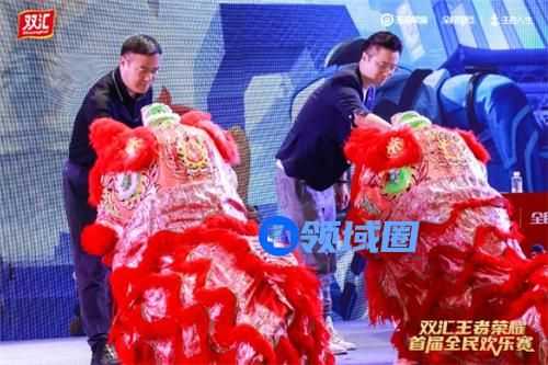 在开场表演后,舞狮登台烘托现场火热氛围。双汇发展营销公关副总裁周霄、北京市电子竞技运动协会会长刘振上台为舞狮点睛,并由双汇发展营销公关副总裁周霄发表致辞,向两支角逐总冠军的队伍进行祝贺,他表示,这次比赛不仅是智力和技能的比拼,更是展示年轻人活力和激情的舞台,他鼓励广大年轻人继续发扬热爱和激情,为实现个人梦想同时为社会创造更多的价值。