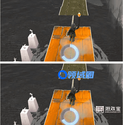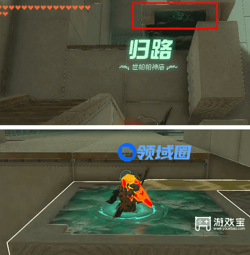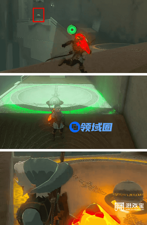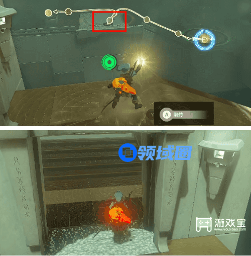 1、进入神庙后,当移动的平台到达下图位置的时候使用倒转干坤将它固定,然后使用通天术来到顶层。