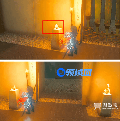 5、将火把点燃门口的两座烛台,就能解锁大门。