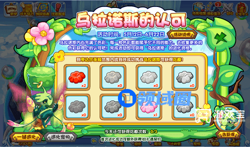 3、活动需要收集花瓣,小洛克们在帝达尔圣城范围内寻找乌拉诺斯,向Ta发起挑战,战胜可随机获得不同颜色的花瓣,每日只有三次机会。