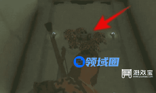 5、朝东侧墙壁上方看,用附加有火焰果的箭射击可燃的藤蔓,宝箱掉落,拾取小钥匙。