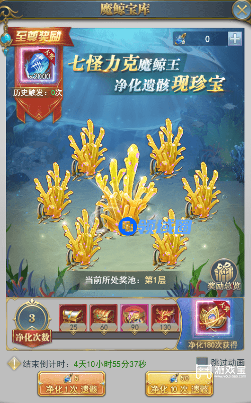 魔鲸宝库中包含普通遗骸与特殊遗骸,净化普通遗骸后,直接发放道具奖励