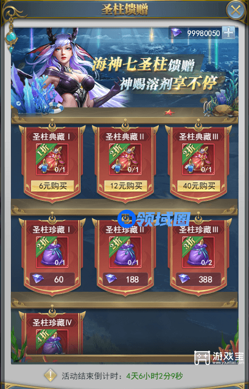 活动期间在圣柱馈赠商店中购买超值折扣礼包,可获取大量神赐溶剂