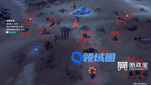 步骤一、二、三、四、五、七、八、九、十、十二:使用苦离果轰炸油桶、水琥珀、电气水晶、荆棘、大锅就好,一共消耗十颗苦离果。