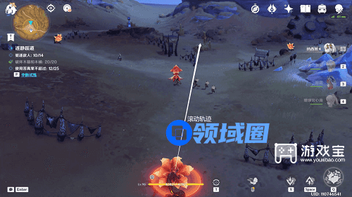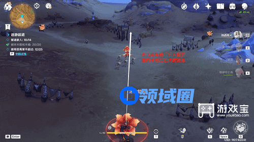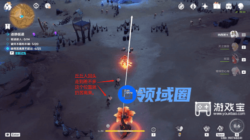 步骤十一,路径上一次性击飞三或四个(因为有一只可能会被油桶炸掉)丘丘人。