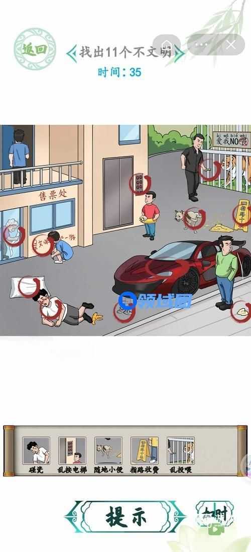 汉字找茬王不讲武德关卡里需要玩家在场景中找出11个不文明的地方后才可以过关,游戏宝小编带来汉字找茬王不讲武德攻略,一起来看看吧。