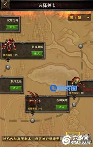 血战沙场地图是非安全区,每个地图有不同的等级要求,达到条件方可进入。主角英雄在此挂机打怪可以享受更多的经验和物品爆率,进入该地图的玩家均可获得极高的收益。在放置式基础玩法支撑下,玩家们进入该地图后便自动开始挂机打怪,无需时刻在线或耗费大量时间关注,退出客户端或后台运行亦可把超高收益收入囊中。