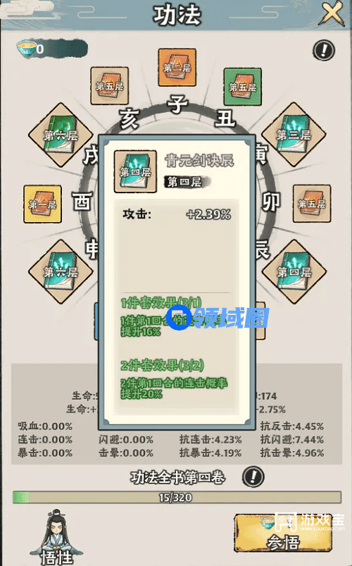 2、功法方面可以选择青元剑诀、血炼大法、千幻迷魂,进一步加强连击、吸血,或者暴力的击晕属性。
