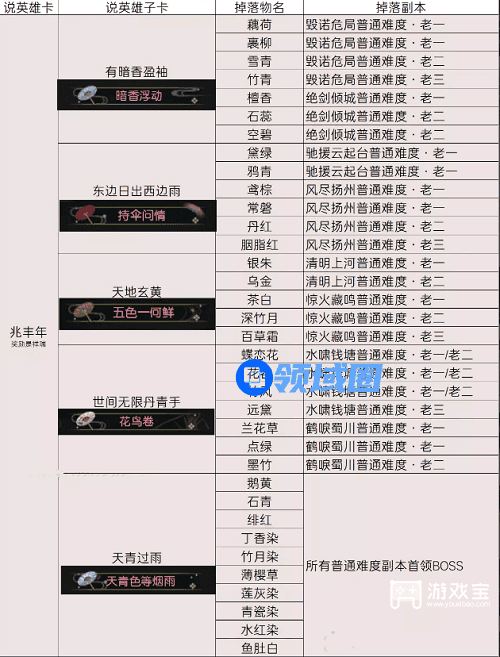 4、三名首领均掉落:【油纸伞·水红染】、【油纸伞·青瓷染】、【油纸伞·莲灰染】、【油纸伞·绯红】、【油纸伞·鱼肚白】、【油纸伞·石青】、【油纸伞·竹月染】、【油纸伞·丁香染】、【油纸伞·鹅黄】、【油纸伞·薄樱草】