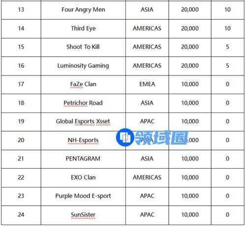 第二名由EMEA的Acend俱乐部以总分124分夺得,而第三名则由中国的Tianba Esports获得。
