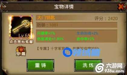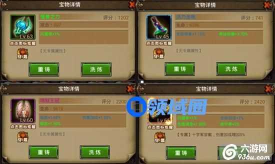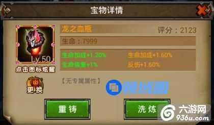 如果对宝物的属性感到不满意,可以对宝物进行洗炼。洗炼宝物会消耗金币。