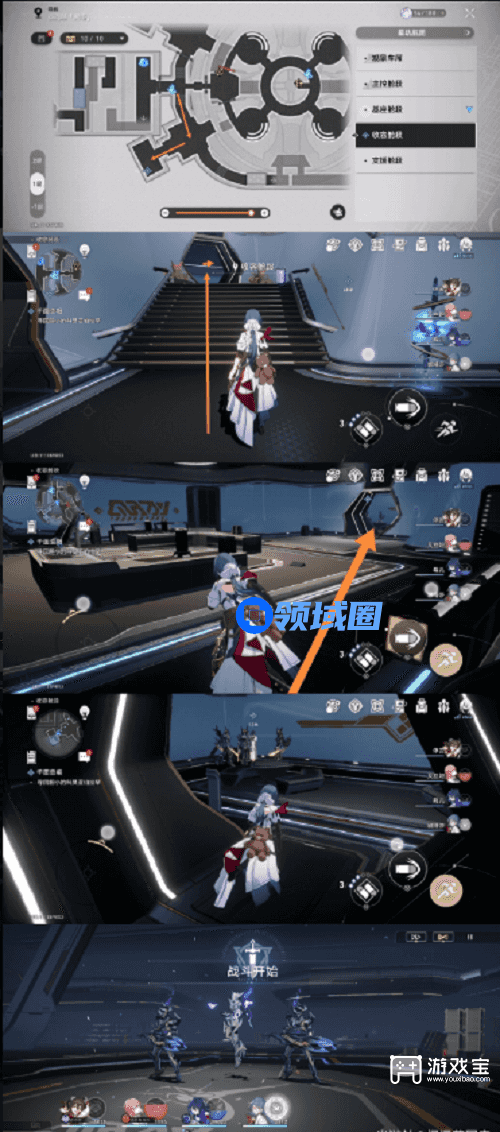 3、然后从收容舱段的控制中心外(一楼)传送,跟着箭头方向走,找到亚伯拉罕,清怪。