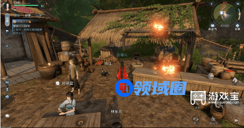 3、与小二对话完成后,小店的房顶上就会着火,玩家需要对着几团火焰用冰系或水系技能可以灭火,完成后任务奖励了一个纸条,是【穷山海】的线索,顺着线索一点点去找下一件装备,最终完成解谜后可以获得一件不错的装备。
