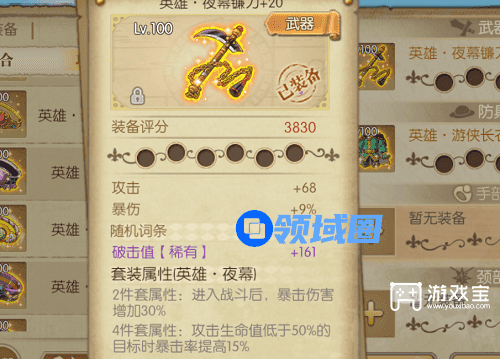 2、PVE:夜幕武器、游侠衣服、夜幕戒指、游侠项链。除了戒指外,其他的散件都可以双爆伤,同时2夜幕和2游侠各自都有30%爆伤的套装效果。
