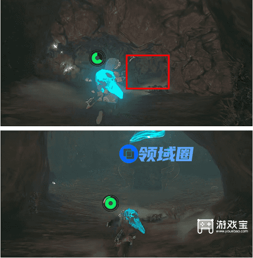 1、来到目标位置我们可以看到一个洞穴【更格尔山的洞窟】,然后我们一直往里走,看到敌人后超标记洞口继续前进。