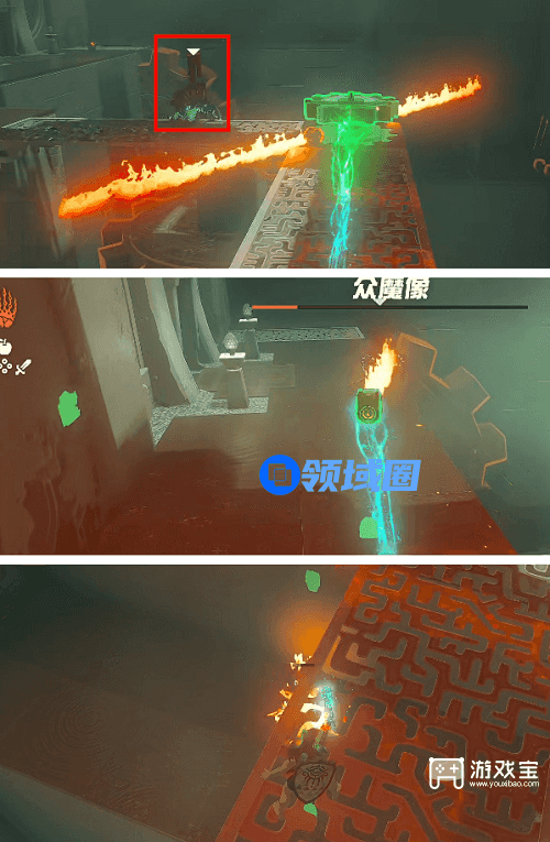 7、使用究极手控制喷火装置,然后对付剩下的三个中模像。