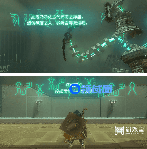 1、帖恩吉帖恩神庙相对比较简单,只需要完成投掷操作即可,该关卡中其他攻击是无效的。(弓箭无效)
