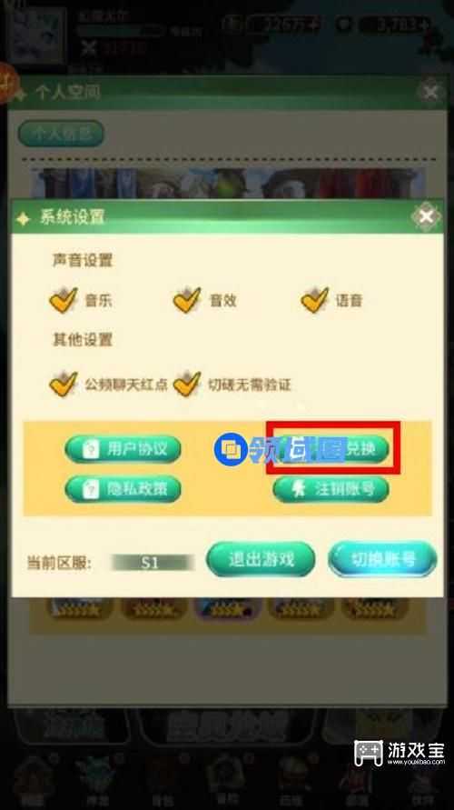 10、在设置里点开兑换码,输入上面的兑换码点击确定后即可领取。