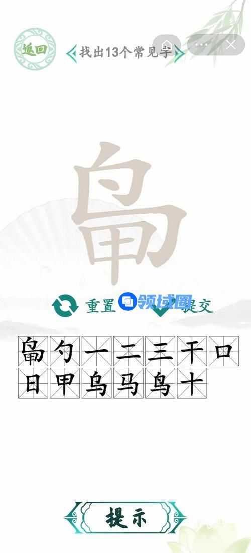 3、以上就是汉字找茬王鸟甲找出13个字攻略了,希望可以帮到大家。