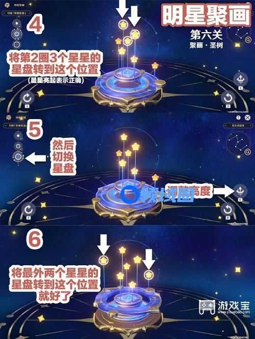 原神明星聚画第六关中,玩家需要转动星盘,让星盘组成指定的图形以后才可以过关,游戏宝小编带来原神明星聚画第六关攻略。