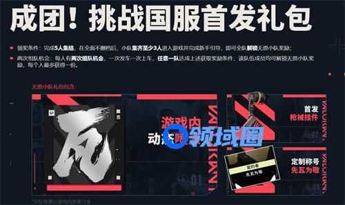 玩家还可以以五人小队的形式进行组队预约,完成任务即可解锁全队的无畏小队奖励,包含定制称号、动态喷漆和首发枪械挂件。