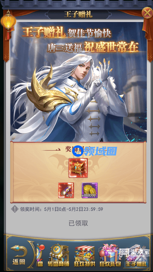 从5月1至5月2日,可免费领取王子赠礼奖励。