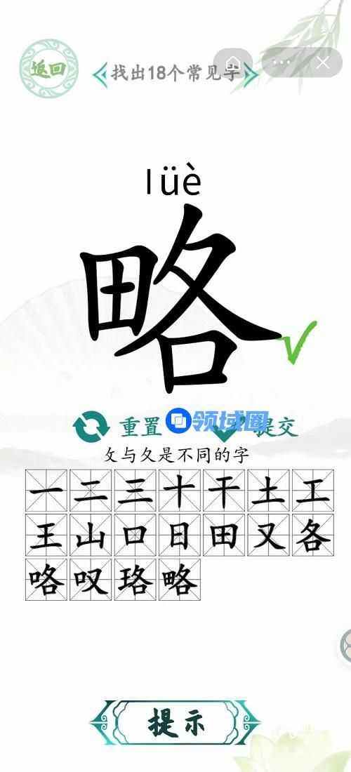 汉字找茬王最新的找字关卡中,需要玩家从略上面找出18个字后才可以过关,游戏宝小编带来汉字找茬王略找出18个字攻略。