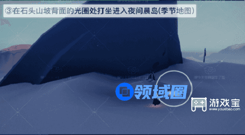 3、在石头山坡背面的光圈出打坐进入夜间晨岛(季节地图)。