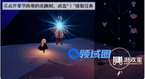 光遇夜行季开启以后玩家可以接取季节任务找到先祖兑换物品,那季节任务应该怎么接取呢?游戏宝小编带来光遇夜行季季节任务接取方法,一起来看看吧。