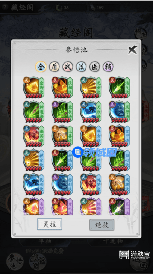 3、【医】主推:灵技-辰月仙诀(俗称无敌盾,仙雾通关必备),神通身法-带闪避属性。