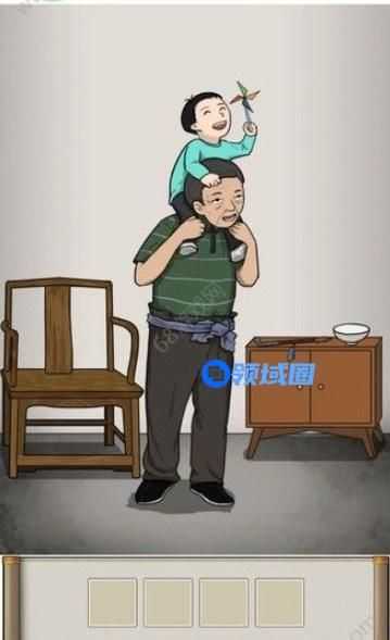 1、第一幅图中是爷爷将小孩举高高,这里最关键的点在于柜子里面的钱包,我们需要长按柜子才能将其打开;