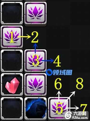 这个点击是需要消耗1行动力的。这是刚开始开启棋阵的关键,刚开始走图的时候,需要尽量多的开启多的棋格子。能消耗1行 动力开启周边3个格子,就不要去走只能开启1个格子的。如下图所示,开1号位的话,1行动力开启2号位一个;若是开3号位的话,1行动力开启2、4号2个 格子;若是开5号位的话,1行动力开启6、7、8号3个格子。走格子的过程中要注意这些小技巧。开这种格子是有几率掉开宝箱的钥匙的,掉的几率还行。