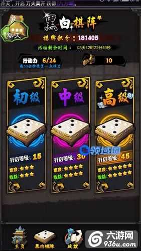 棋阵和其他2个周活动一样,也是分为3种等级,等级直接与角色等级挂钩。开启高级的同时、中低级也可以开启。棋阵是13×13的方格子中,首先需要翻起来被覆盖的棋格子,才知道下面是什么。翻格子本身不消耗行动力,但是翻出来后,若是再操作就会消耗行动力。