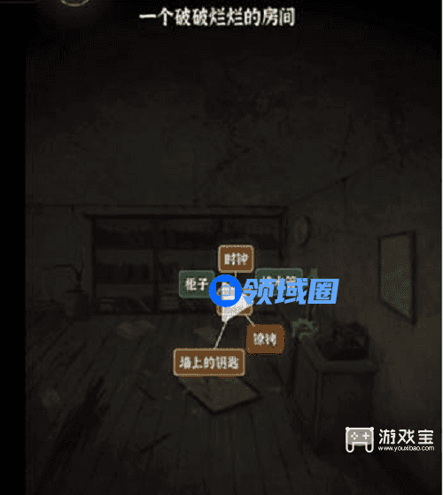 1、首先点开房间,可以得到【柜子】、【时钟】、【排水管】、【镣铐】、【墙上的钥匙】。