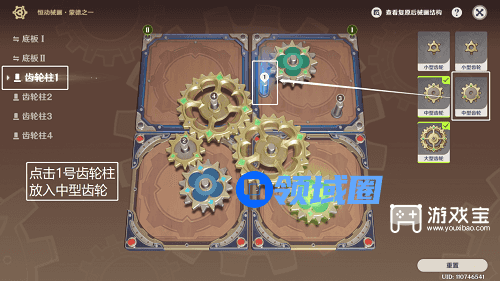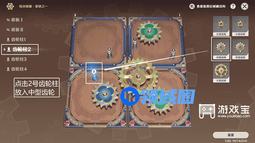 2、第二步:点击2号齿轮柱,放入中型齿轮。