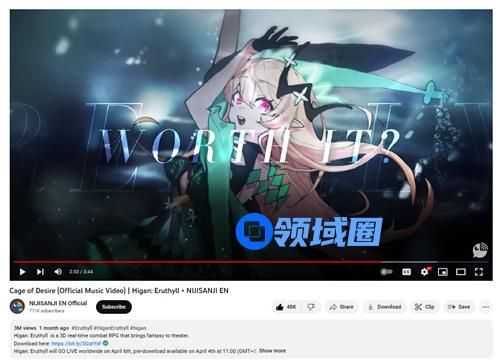 值得一提的是,凭借独特的暗黑歌剧风格,彩虹社EN合作原创单曲Cage of Desire吸引了YouTube、Twitter等平台视频创作者的目光,大量Reaction、二创作品涌现,进一步提升了游戏热度。